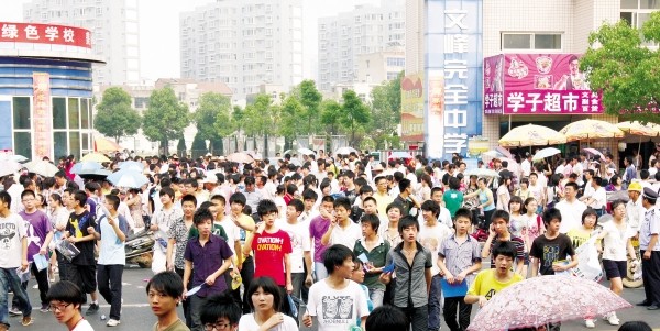 6月21日,曾都区文峰完全中学考点,1648名考生轻松走出考场。当日,我市21942名初中毕业生完成人生中第一次大考。(本报记者 杨闻名摄)