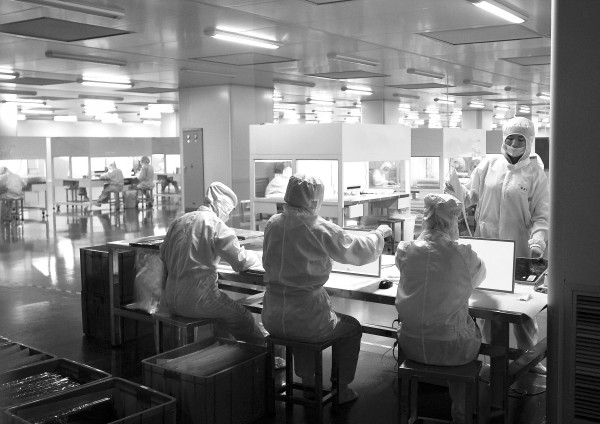创力科(随州)电子有限公司自主研发、拥有自主知识产权的产品液晶模组和背光模块是电视、手机等终端电器的核心部件,市场潜力巨大。目前该公司日产背光片1000片左右,液晶模组、背光模块主要销往香港和台湾。预计今年销售额达1.2亿元,可实现利税2000万元。(本报记者 李文军 摄)