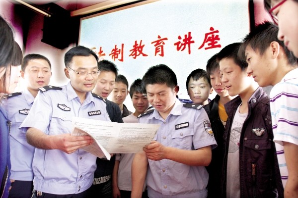 近日,随县柳林镇派出所民警在该镇中心学校开展法制宣传活动,给学校师生送去了一缕“平安春风”,有力地推动了平安校园建设,拉近了警校的距离,深受广大师生的欢迎。 (本报记者 杨闻名 通讯员 蔡晓东摄)