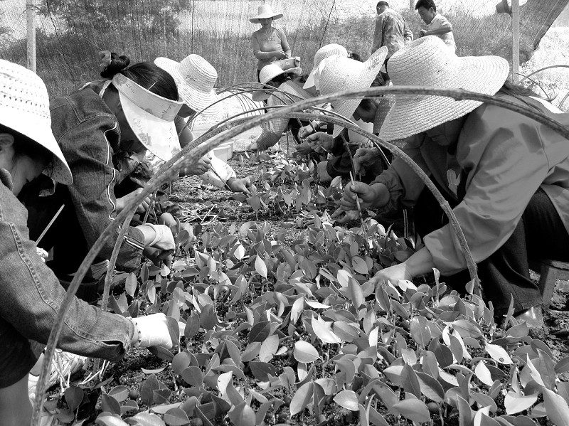 曾都区林业局组织林科所等3个单位,开展油茶芽苗砧嫁接,预计今年底可出圃良种油茶容器苗200万株。 (王华江 摄)