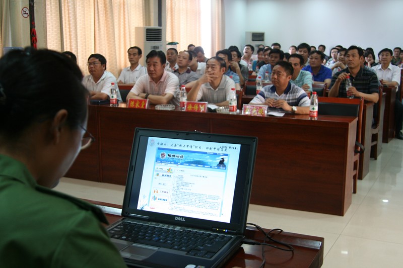 六月二十二日,随州交通运输局电子政务大平台专项行动启动,该局积极推行电子政务网上审批,为民众提供方便快捷的服务。(徐军国 摄 赵发坤 文)