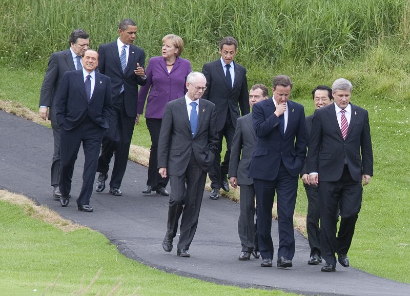 当地时间6月25日,为期一天半的八国集团首脑会议在加拿大多伦多的亨茨维尔小城开幕,与会各国领导人将重点评估对发展中国家的发展援助,会后将发布马斯科卡倡议,以落实联合国千年发展目标。会议还将讨论伊朗核问题、朝鲜半岛局势、气候变化和能源等问题。 (新华社发)