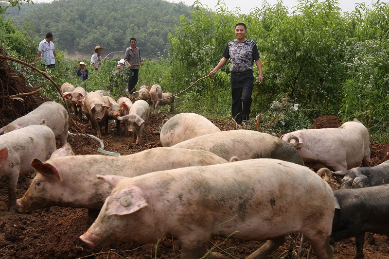 6月22日,随县尚市镇群岳村六组,绿色生态养殖园主人李伍,正在山涧放猪。据介绍,去年8月份,李伍回乡创业投资500万元,承包该村4000多亩荒山,在养殖园建起了绿色生态“野”猪林,喂养数百头纯土猪,“放猪归山”散养,以此打造绿色生态养殖品牌。 (本报记者 杨闻名摄)