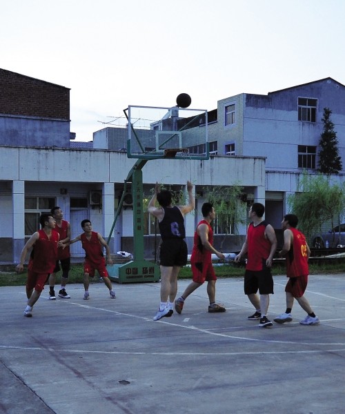 6月30日,市质量技术监督管理局机关干部和市冰姿服饰公司员工共同举行了一场“庆七一”篮球联谊赛,以此庆祝党的生日。 (本报记者 李文军摄)