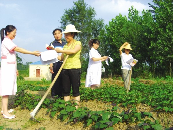 近日,曾都区万店镇计生办开展“送生殖健康”行动,组织工作人员将计划生育优质服务承诺书、生殖健康手册、婚育指南等知识卡送到田间地头,受到群众欢迎。 (熊扬振摄)