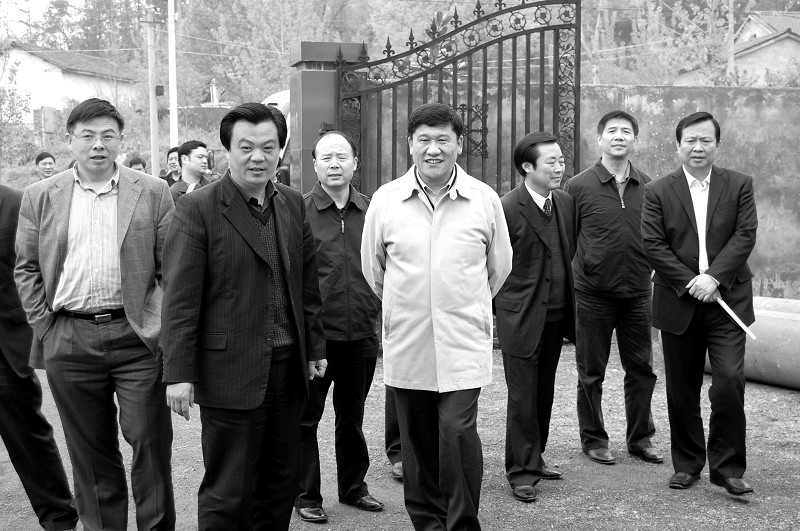来山视察指导农村党的基层组织建设工作。副省长田承忠(左一)、市长刘晓鸣(左二)来大洪山玉龙温泉公园视察指导工作。