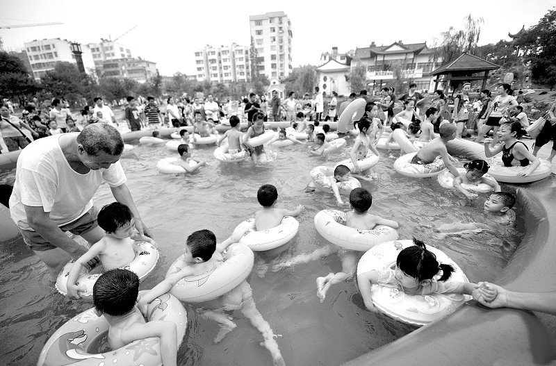 下图:小朋友们泡在气垫游泳池里,足足过了一把游泳瘾。