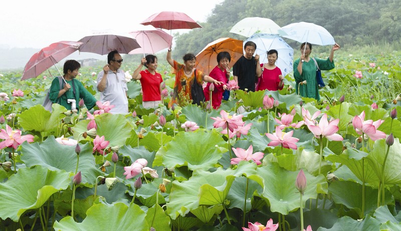 花开时节绿映红,映日荷花醉游人。7月11日,曾都区万店镇百亩荷塘荷花争奇斗艳,美不胜收。雨中吸引八方游客和摄影爱好者前来赏花和采风。 (本报记者 杨闻名 通讯员 杨从华摄)