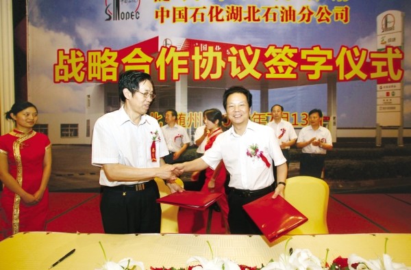 中石化湖北石油分公司党委书记刘万江、副总经理杨计明,市政协主席樊建国,市委常委、常务副市长何光中等参加签字仪式。副市长夏卫东主持签字仪式。