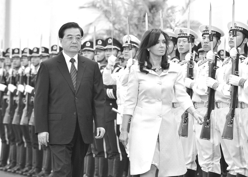 7月13日,国家主席胡锦涛在北京人民大会堂举行仪式,欢迎阿根廷总统克里斯蒂娜访华。 (新华社发)
