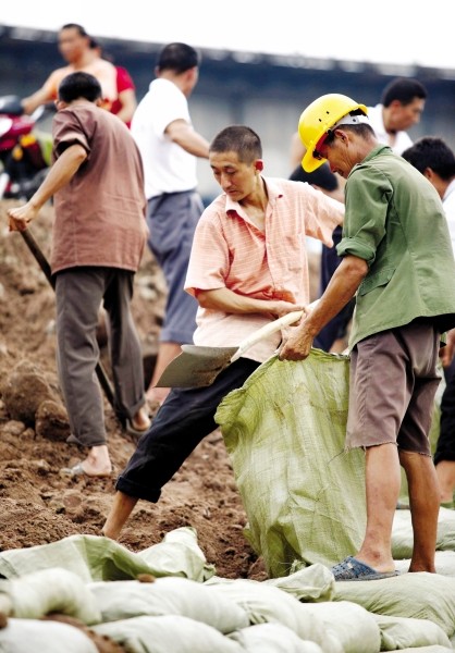 18日,在随县殷店镇境内,抢险人员正在抢修马家塔大桥便道。 (本报记者 孙洪涛摄)