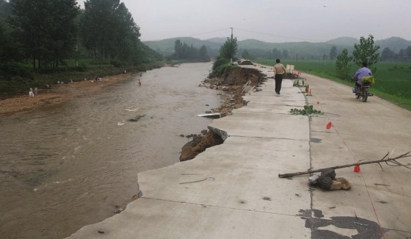 牛程公路损毁严重,道路出现了大面积的垮塌现象。 (本报记者 孙洪涛摄)