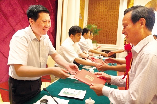 图为:昨日,全市“学习《廉政准则》,争做勤廉表率”表彰勤廉典型暨先进事迹报告会上,市委书记王祥喜为勤政廉政先进个人颁奖。 (本报记者 杨闻名摄)