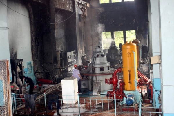 7月21日,在俄罗斯卡巴尔达-巴尔卡尔共和国的巴克桑水电站,人们在爆炸现场查看。俄罗斯卡巴尔达-巴尔卡尔共和国巴克桑水电站21日清晨发生爆炸袭击事件,造成2人死亡、2人受伤。 (新华社发)