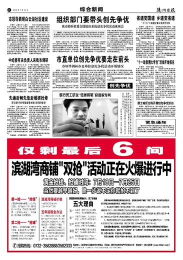 本报讯 记者唐天才、通讯员李定希报道:7月21日,市委常委、常务副市长何光中带领市商务局、抚贫办等部门负责人到曾都区西城白云湖社区调研社区建设,帮助解决社区困难。 白云湖社区(前身