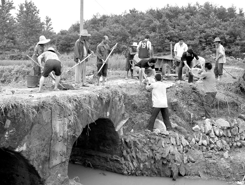 七月二十日,随县高城镇龙王庙村村民自筹资金,修复被洪水损毁的桥梁。目前,该镇全面掀起生产自救热潮。(本报记者 李文军 摄 通讯员 秦学文)