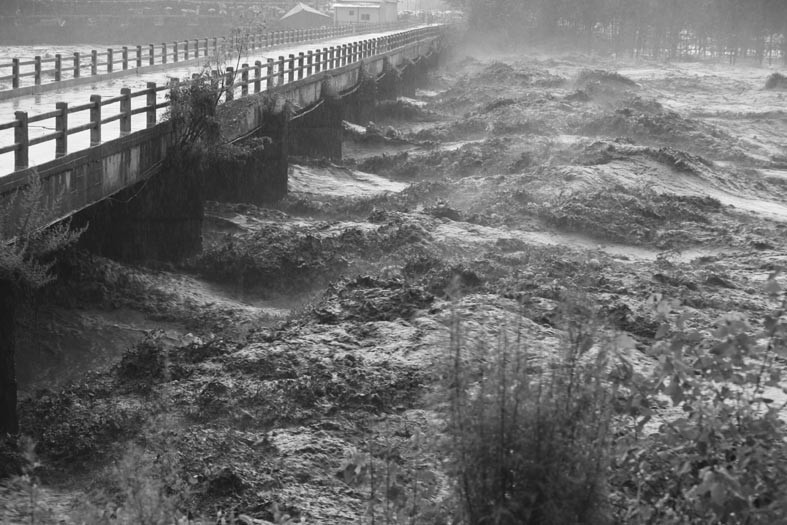 7月24日,受降雨影响,洛阳市嵩县境内伊河水位暴涨,旧县乡大桥下洪水波涛汹涌。7月23日8时至24日15时,河南豫西山区西峡、淅川、卢氏、栾川、洛宁等县部分地区降暴雨、特大暴雨。栾川县因灾死亡4人,失踪2人。(新华社发)