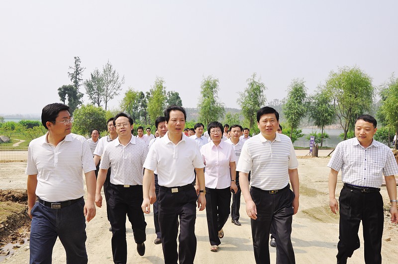 市委书记王祥喜(右一)、市长刘晓鸣(右五)在县委书记周静(右三)、县长陈德贵(左四)等的陪同下调研随县招商引资企业建设