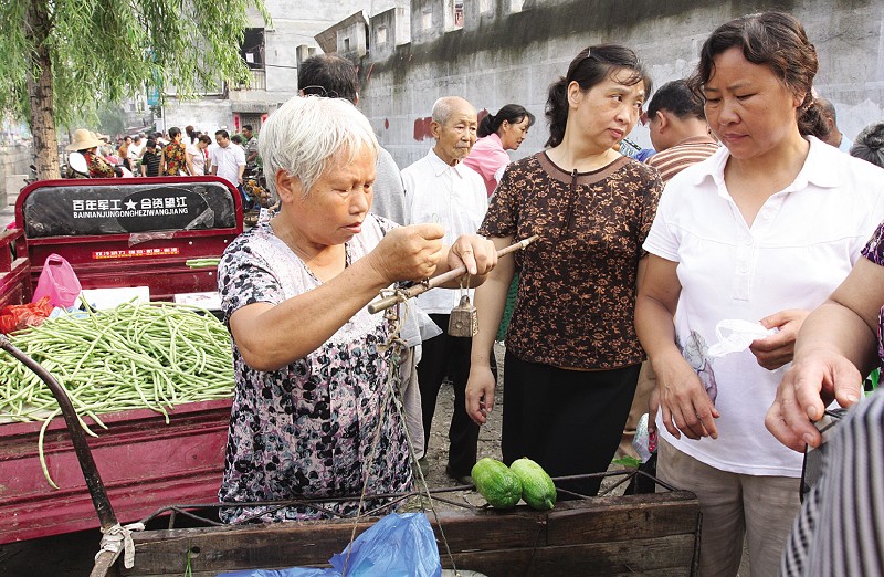 图④:面对蔬菜价格走高,市民不得不“两两计较”。