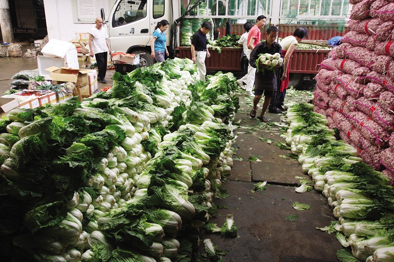 图②:城区一些批发市场正从外地大量调运蔬菜入市。