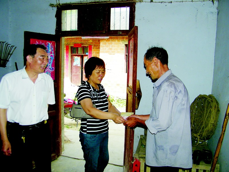 曾都区粮食局积极开展创先争优活动,近日,局党委组织机关党员到府河镇钰山村慰问困难党员,为14名困难党员送去慰问金2800元。 (刘 军摄)