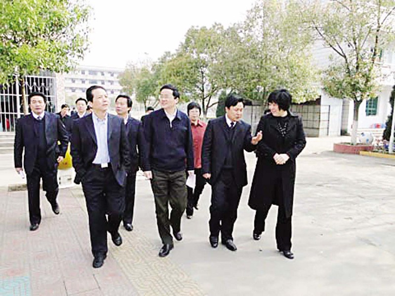副省长郭生练(中)在市长刘晓鸣(左二)、副市长李雅君(右一)、县委书记周静(右三)的陪同下考察随县教育工作