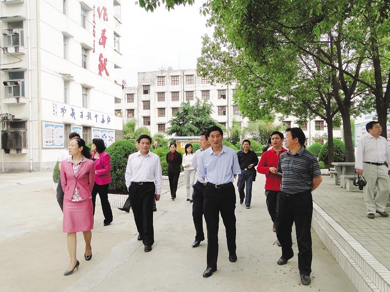 ▲省教育厅副厅长徐金山(前排右二)在市、县领导的陪同下考察随县教育情况