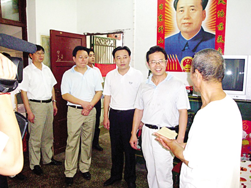 县长陈德贵(右二)、县委副书记张健(右三)、县委常委、宣传部长朱军(右四)一行深入教师家中慰问