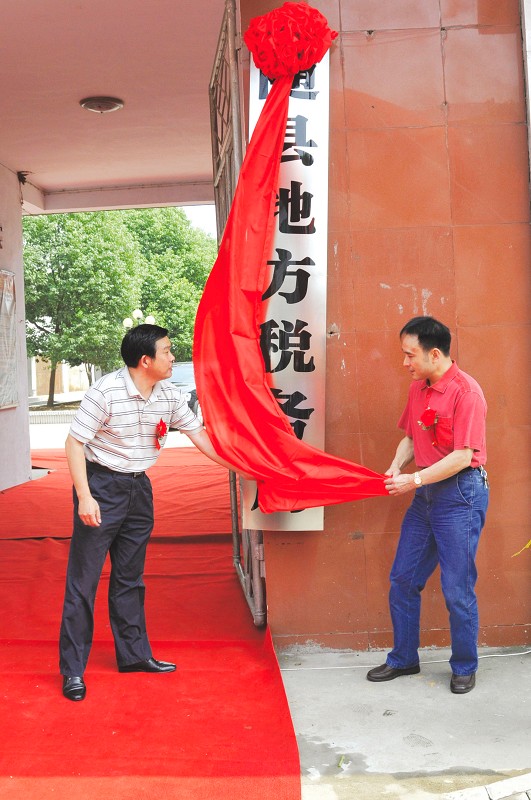 2009年8月26日,随州市地税局局长、党组书记黄宜龙(右)和随县县委常委、常务副县长万明(左)共同为随县地税局揭牌。