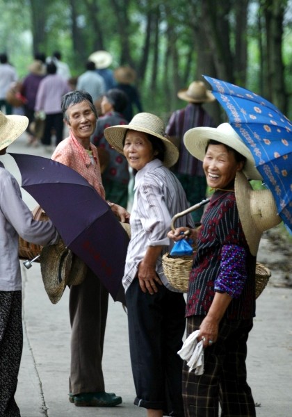 7月25日,随县均川镇一群妇女正在赶往下一个劳动的地点。据了解,她们利用农闲时间组织在一起,到当地种养大户家去帮忙,每人每小时的报酬是3元钱。村民说,钱虽然不多,但大家在一起干活,有说有笑还是非常开心。 (本报记者 孙洪涛摄)