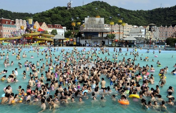 8月1日,众多市民、游客在杭州乐园水公园畅享清凉和快乐。当日,杭州、洛阳、上海等地最高气温超过37摄氏度,人们纷纷来到各类水上公园、游泳场馆,在水中躲避酷暑。 (新华社发)