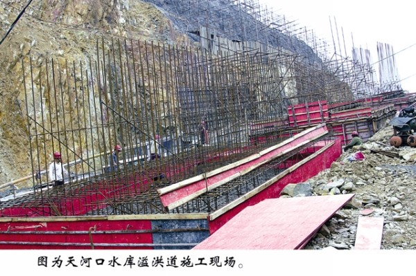 天河口水库溢洪道施工现场