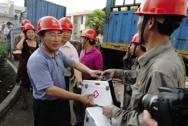 持续的高温天气拉动用电量不断攀升,广大供电员工奋战施工现场,增容改造确保市民清凉度夏。8月4日,随州供电公司领导将防暑降温药品送到35千伏何店变电站施工现场,叮嘱施工人员高温作业注意安全。