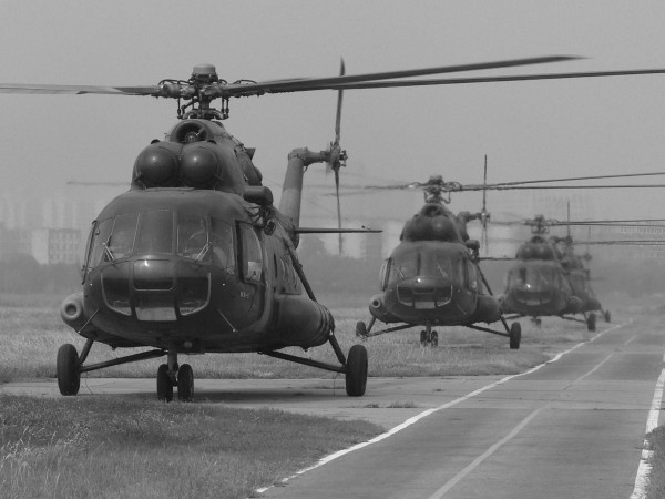某陆航团模拟“敌”救援直升机紧急起飞。