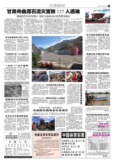 新华社8月8日电 8月8日凌晨,甘肃省舟曲县因强降雨引发滑坡泥石流,堵塞嘉陵江上游支流白龙江,形成堰塞湖,造成重大人员伤亡,电力、交通、通讯中断。胡锦涛总书记、温家宝总理作出明确指示。要