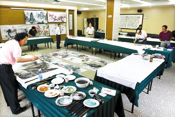 8月4日至8日,北京金城书画院15位书画家在大洪山玉龙温泉景区泼墨创作。据介绍,此次邀请书画名家到景区创作,是今年该景区打造八大文化旅游品牌战略之一。截至目前,该景区文化建设投资已达3000多万元。