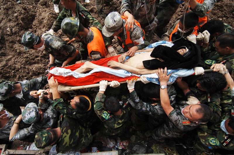 8月10日11时30分左右,在甘肃省甘南藏族自治州舟曲县参加救援的四川省广元市利州区民兵救出一名生还者,据了解生还者名叫刘马胜代,52岁,目前已被送往医院救治。 (新华社发)