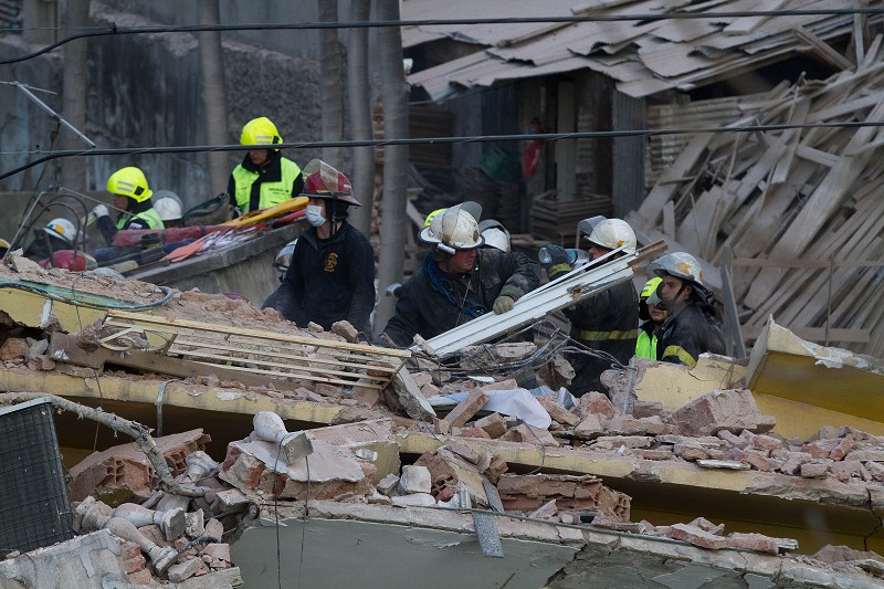 8月9日,布宜诺斯艾利斯一幢在建的五层楼房突然倒塌,砸向旁边的一幢楼房,造成至少8人受伤,15人被埋。截至发稿时,仍有两至三人被困,其中包括一名原籍上海的华裔青年。 (新华社发)