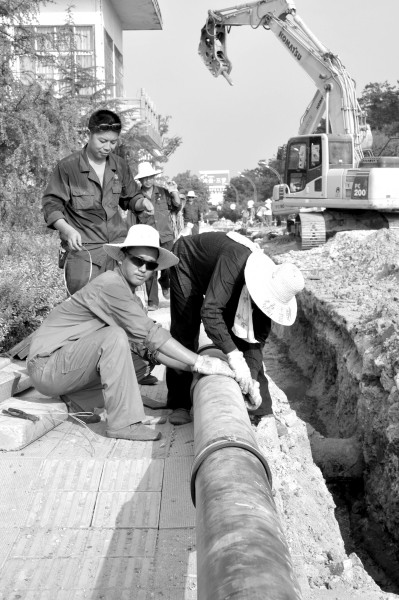 西气东输工程进入城南新区。8月13日,烈日高温没有阻挡工程进程,整个工程沿随城白云大道全线展开,施工人员不顾天气炎热,精心施工。