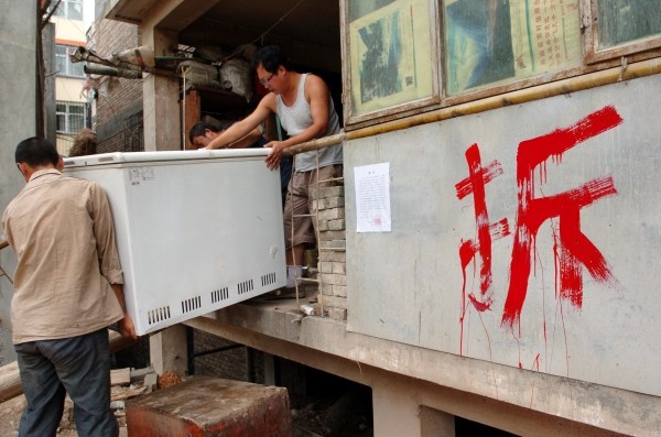 8月16日,两位舟曲灾区居民正将冰箱从被泥石流毁坏的家中搬出。舟曲县政府8月16日向灾区群众发布通知,对三眼峪沟、罗家峪沟等洪水泥石流侵害的土地依法紧急征用。舟曲县东街村、北街村、三眼村、瓦场村数百幸存的村民不得不暂时离开他们的家园,等待他们的将是未来的新生活。 (新华社发)