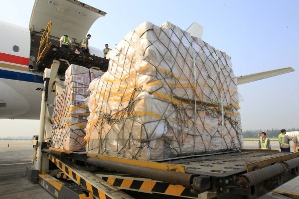 8月20日,工作人员在机场装载救灾物资。当日,中国政府向俄罗斯政府提供的紧急人道主义救灾物资在京启运。该批救援物资包括2000套防毒面具、4000套防毒面具罐、1400套消防战训服、900套消防空气呼吸器、200个空气罐、40套灭火系统等。总价值2000万元人民币、共75吨的紧急援助物资将于20日晚9时运抵莫斯科。
