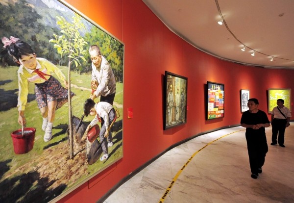 8月26日,庆祝深圳经济特区建立三十周年美术作品展在深圳关山月美术馆开幕。参展的90件作品是从深圳市三十年来具有代表性的美术作品中精心遴选出来的,这些作品有的是中国美术馆和深圳各大美术馆的藏品,有的是不同时期的代表作品,有的是艺术家们的新作,它们作为改革开放的历史写照,用艺术的形式记录了特区30年发展的光辉历程和建设成就。图为几位观众在观看展览。 (新华社发)