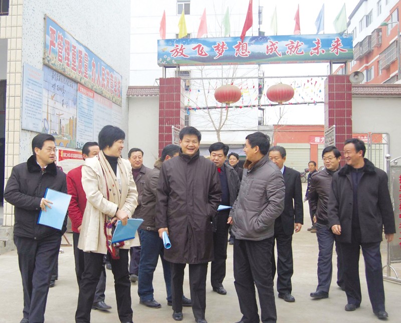 省教育厅党组书记蔡民族(前排中)在副市长李雅君(前排左二)陪同下深入我市学校调研