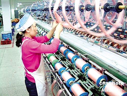 八月二十五日,厉山镇鹏翔纺织公司员工正在紧张生产。新随县成立后,大力招商引资,为传统纺织业注入生机与活力。目前,全县规模以上纺织企业达到五十五家,成为推动随县工业发展的中坚力量。(特约记者 钟克波 摄)