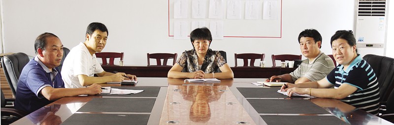 团结战斗的领导班子。党组书记、局长苏爱珍(中),党组成员、副局长罗华宗(左二),党组成员、副局长刘金文(右二),党组成员、工会主席李静东(左一),党组成员刘常慧(右一)。