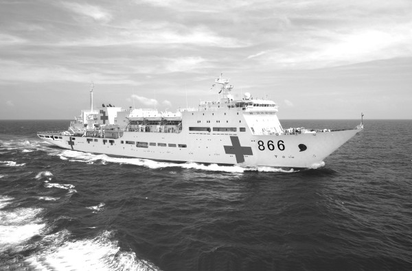 8月31日,中国“和平方舟”号医院船从浙江舟山起航,前往亚丁湾海域及吉布提、肯尼亚、坦桑尼亚、塞舌尔、孟加拉国等亚非五国执行“和谐使命—2010”任务。这是中国“和平方舟”号医院船首次赴国外执行巡诊及医疗服务任务。“和平方舟”号医院船是由我国自行研制的世界首艘万吨级医院船。“和平方舟”号医院船在海上航行。(新华社发)