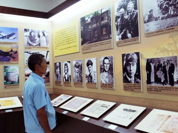 9月3日,市民正在参观展览。当日,一批近期从重庆市档案馆和民间寻找、征集到的黄山空军烈士公墓相关史料在“空军抗战纪念园”展出。 (新华社发)