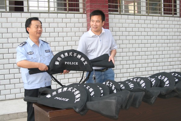 为确保在校学生安全,八月三十日,随州经济开发区筹措专项资金,为辖区每所学校配备相关防暴器材。图为发放现场。(徐军国摄黄正祥文)