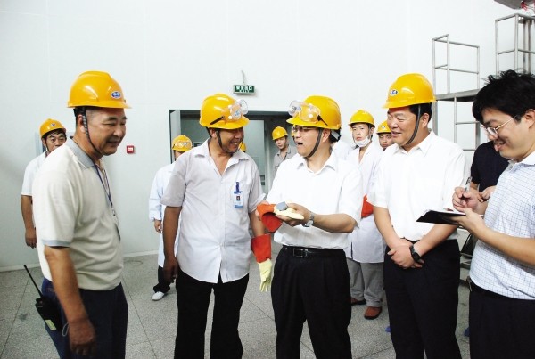 市委常委、常务副市长何光中(左三)调研多晶硅项目