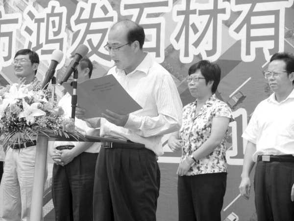·草店镇委书记、镇长岳全谱在广发石业和鸿发石材公司开工仪式上致词